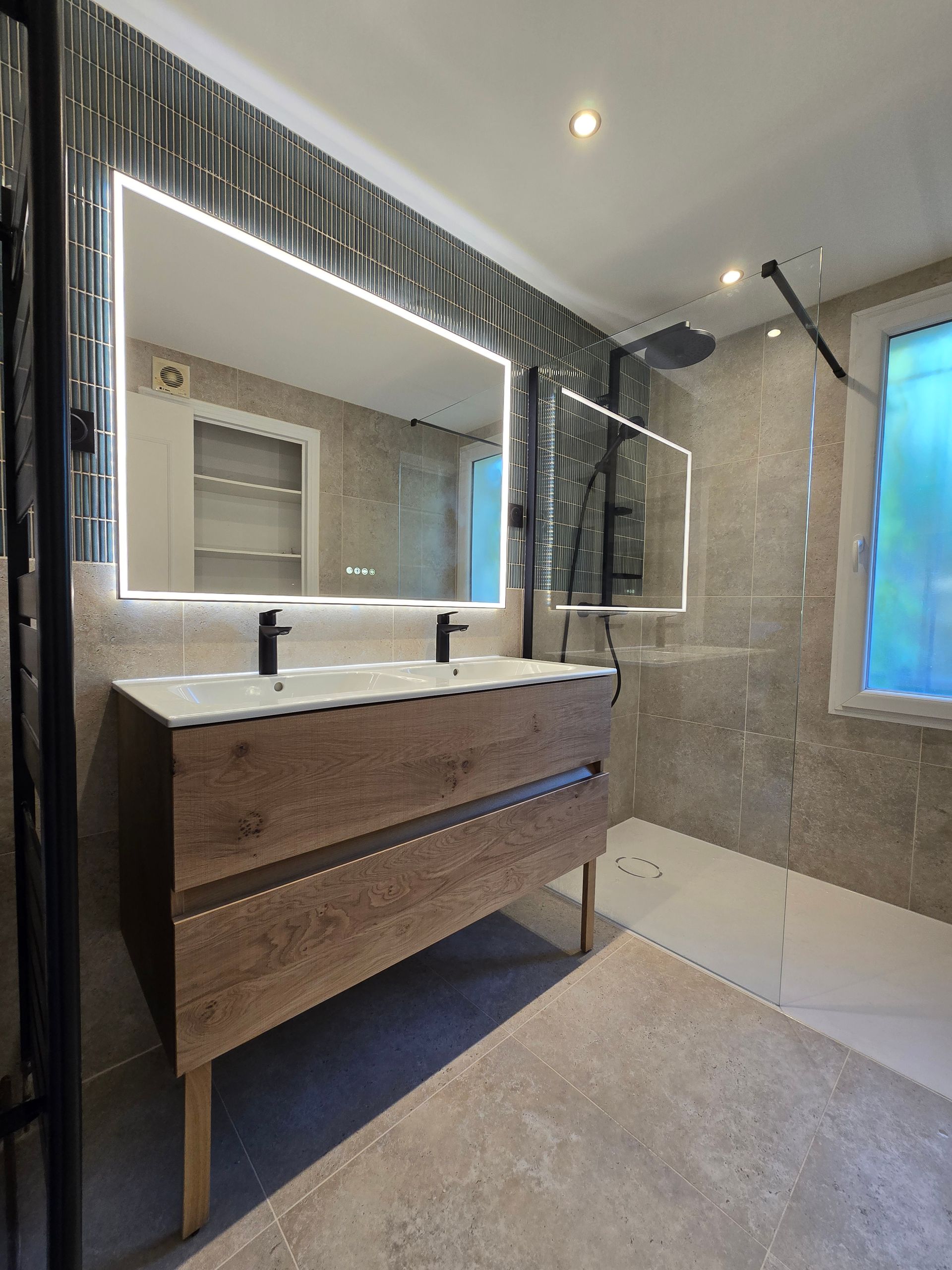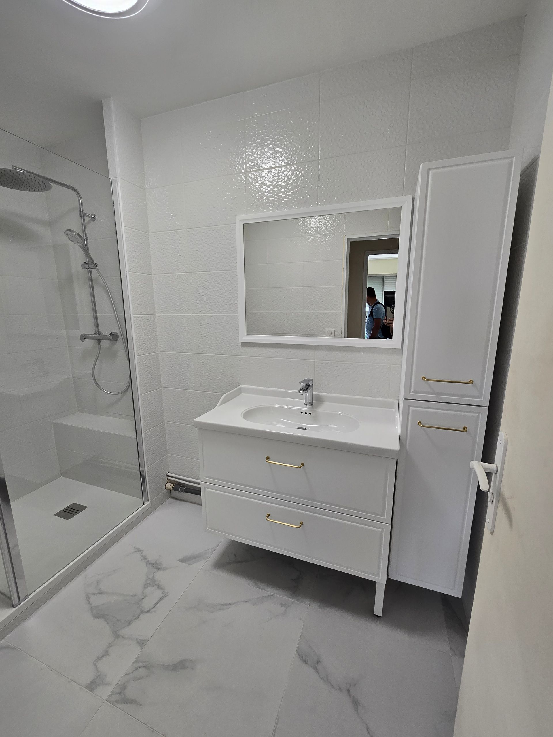 Au fil des années, je me suis spécialisé dans la rénovation de salles de bains – un espace de vie clé dans la maison, qui demande à la fois technicité, goût esthétique et souci du détail. J’interviens également sur des rénovations de cuisines et des petits travaux (peinture, pose de mobilier, dépannage…).
